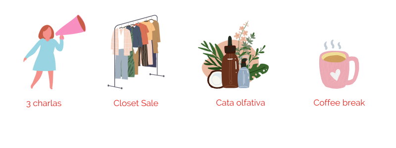 En esta experiencia tendrás la oportunidad de acceder a tres charlas 🙋♀️, una cata olfativa🌷, coffee break ☕ y un closet sale👗: