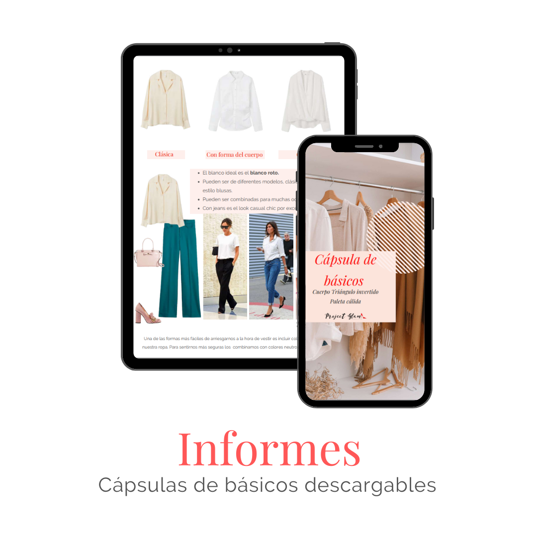 Estos archivos están listos para ser enviados a tu clientes, dando no solo un valor agregado, incluyendo siempre en tus informes una cápsula de básicos del guardarropa, sino también ideas muy claras de cómo ayudar a tus clientes con su imagen personal.